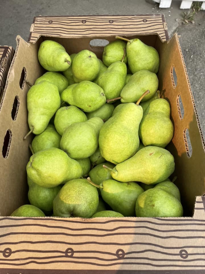 About Pears: We grow several pear varieties that thrive in our valley. Pears are unique among tree fruits – they’re picked when mature but still firm, and ripen OFF the tree for best flavor and texture.